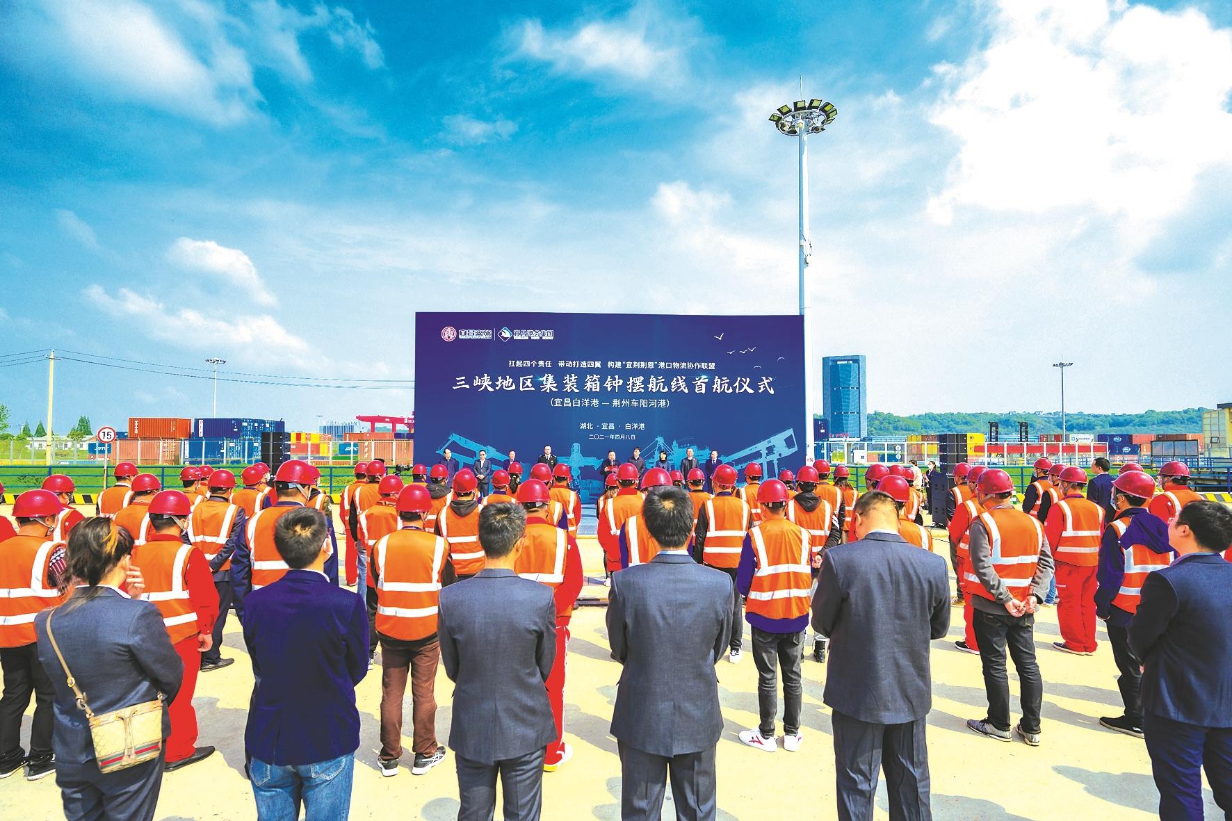 4月8日上午,三峡地区集装箱钟摆航线首航仪式在三峡枢纽白洋港举行。