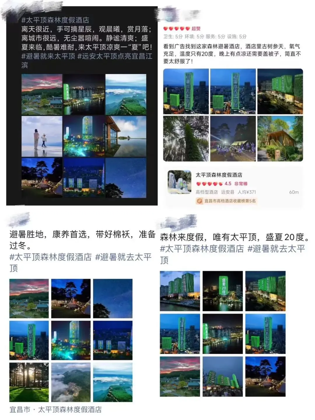巧借滨江楼宇。利用夏季纳凉人流量最集中的滨江地段,在伍家岗万达、宜昌国际广场、福江铭座三座宜昌地标建筑,不间断播放“远安太平顶盛夏20度真的蛮凉快”“夏日心动梦回车溪”“避暑就去太平顶”“夜游就去三峡车溪”宣传语。醒目的动画设计、强烈的视觉冲击和清晰直白的宣传标语,第一时间吸引了纳凉人群的目光,从而达到快速宣传和推广的目的。