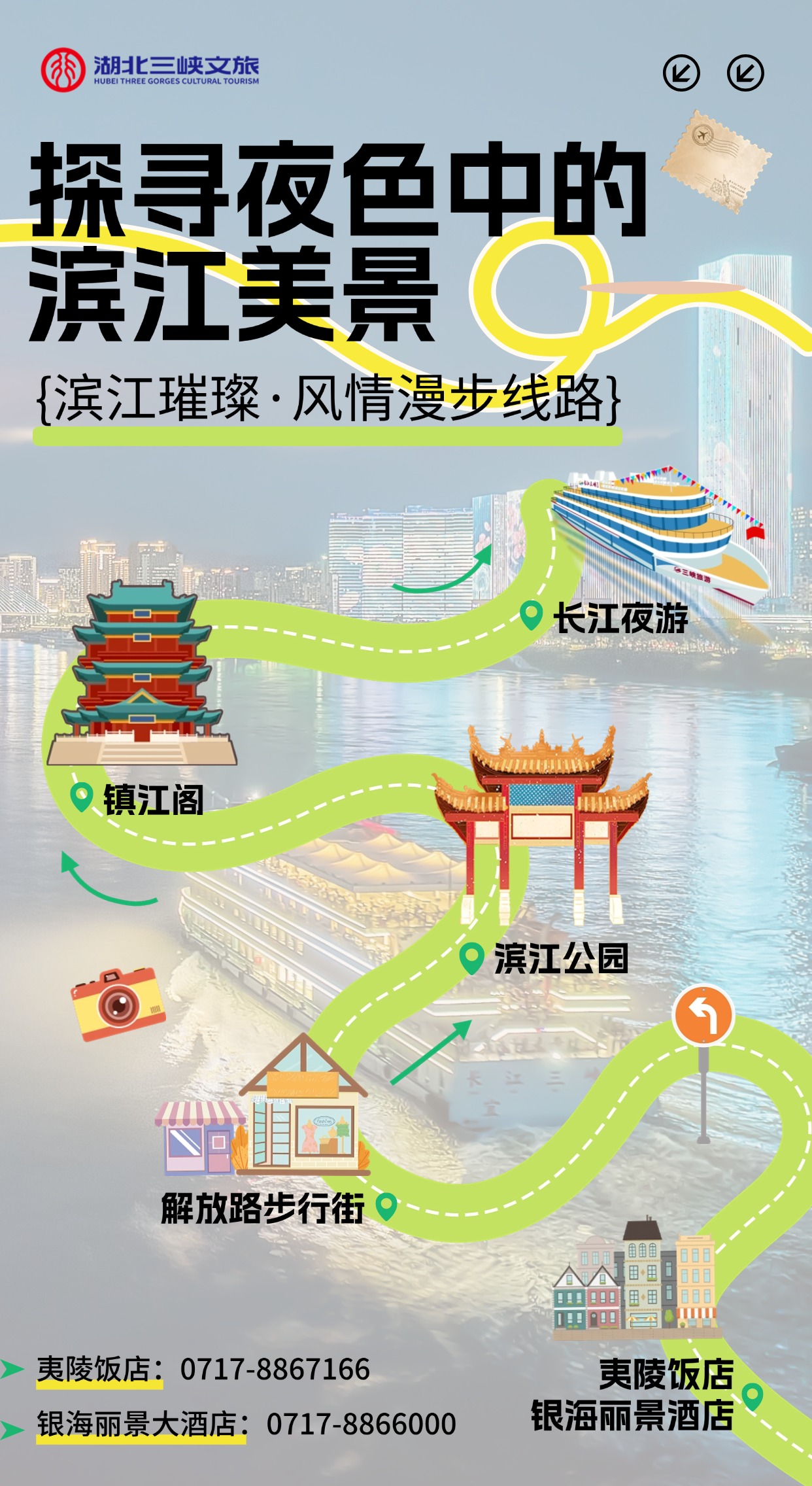 在宜昌这座活力四射的城市里,藏着无数等待你我去发掘的宝藏路线。而宜昌的夜晚,藏着比白日更深的韵味与风情。这次,我们带你玩转宜昌,以桃花岭饭店、峡州宾馆、夷陵饭店、银海丽景酒店为起点,探索那些只属于夜晚的宝藏路线!