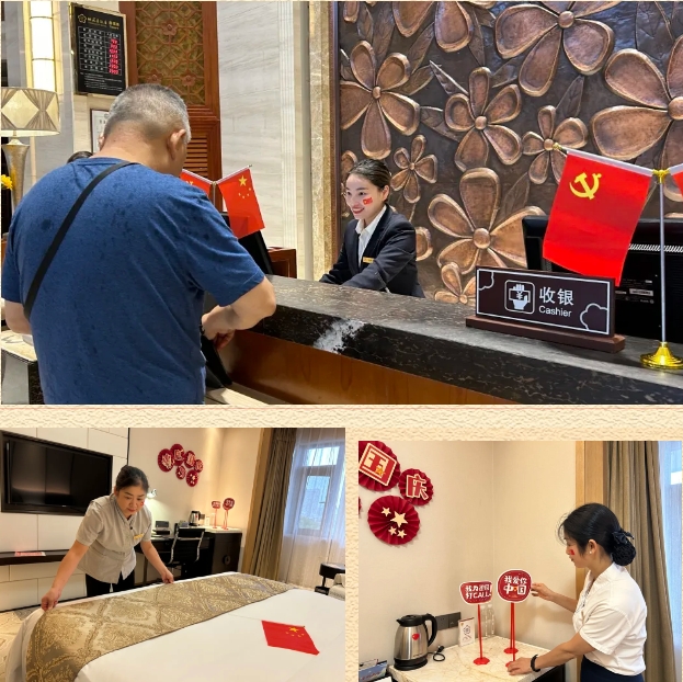 盛世华诞,家国同庆,桃花岭饭店节日氛围感拉满,让宾客感受到了浓浓的节日气氛。