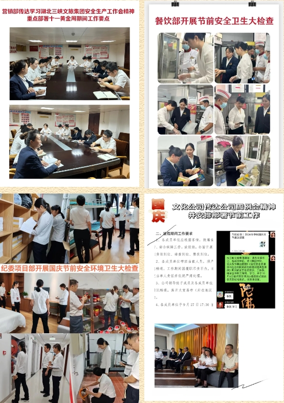 为做好节日期间经营和后勤保障工作,桃花岭饭店节前组织开展了节前安全大检查,全面排查并消除安全隐患。同时,节日期间严格落实负责人带班及部门值班制度,把牢现场检查及安全督导措施,确保酒店安全稳健经营无事故。