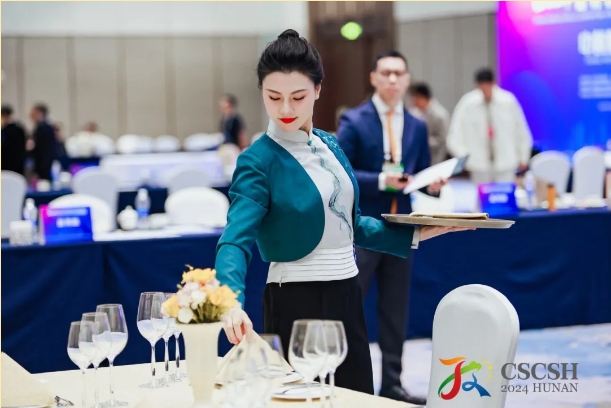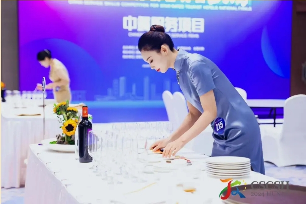 本次竞赛以“匠心服务技耀未来”为主题,旨在激励从业人员弘扬工匠精神,提升服务技能和行业服务质量,培养更多高技能人才,引领带动星级旅游饭店高质量发展。通过前厅接待服务、客房服务、中餐服务、西餐服务四个实操比赛项目以及团体风采展示、理论测试项目,全方位展示星级旅游饭店从业人员的精湛技艺和职业风采。