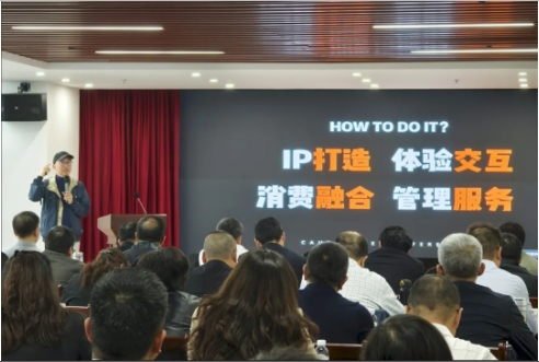 集团营销中心主任张茜分享了郑州银基动物王国、南京红山动物园、“只有河南·戏剧幻城”等文旅企业的出圈“密码”,结合集团现有产业,提出“先出圈再出彩、培育产品自有IP”“先线上再线下、找准增量市场方向”“先定位再定品、精准研判市场需求”三个方面的思考。