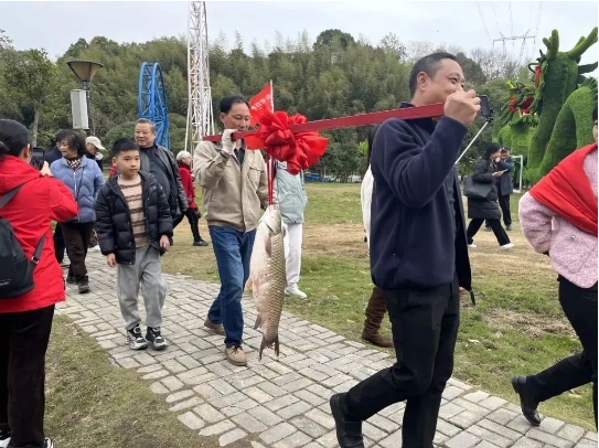 (6)14:00-16:30自由活动:游客可以前往泳池参与捕鱼大战,也可前往荷花池体验挖藕,也可现场年货展位参观购买、也可参与新鲜鱼类制作鱼糕、鱼圆及购买