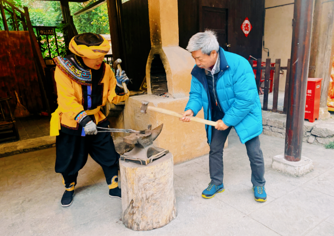 目睹了铁匠精湛的手艺和火花四溅的场景