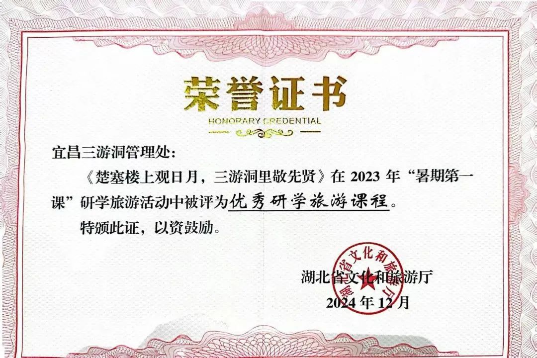 荣获湖北省文化和旅游厅颁布的