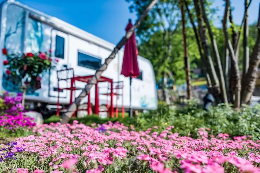 房车露营地的花儿竞相开放