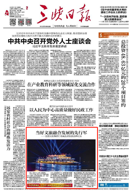 宜昌交旅集团倾力打造“长江夜游”、繁荣宜昌“夜间经济”,成为千亿旅游产业的新亮点,受到海内外关注。10月10日至12日,央视《朝闻天下》、《新闻联播》相继播出宜昌发展“长江夜游”,激活宜昌“夜间经济”,促进群众就业、助推高质量发展的报道,将其作为经典案例向全国推介。