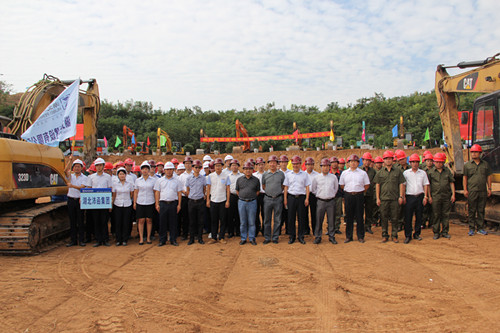 上午十时许,项目现场数十台工程机械整体排列,百余名工人整装待发。